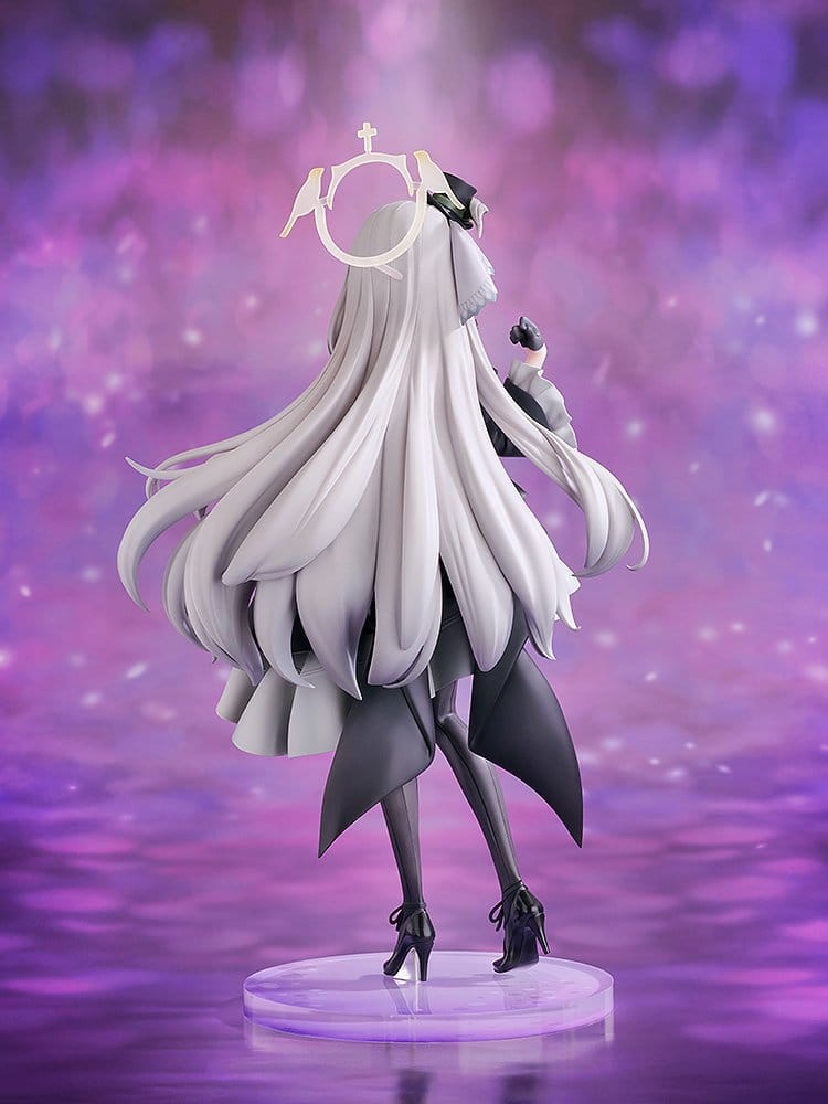 Aus dem beliebten Spiel "Blue Archive" kommt eine maßstabsgetreue Figur von Sakurako, einem Mitglied der Sisterhood der Trinity General School, in ihrem Pop-Idol-Outfit! Die Figur zeigt das Mitglied der Idol-Gruppe "Antique Seraphim", das in einem besonderen Outfit auf der Bühne auftritt. Ihr schickes monochromes Outfit wurde sorgfältig nachgebildet, wobei auf die weiche Textur des Stoffes geachtet wurde, einschließlich der anmutig fließenden Falten des Rocks. Dekorationen wie die Rüschen und der Mini-Hut wurden ebenfalls bis ins kleinste Detail sorgfältig modelliert. Ihr sanfter, intelligenter Charme wird durch ihr strahlendes Lächeln ausgedrückt, während ihr sanft fließendes langes Haar einen zusätzlichen Hauch von Eleganz verleiht. Genießen Sie diesen besonderen Moment mit Sakurako, wie sie auf der Bühne glänzt.